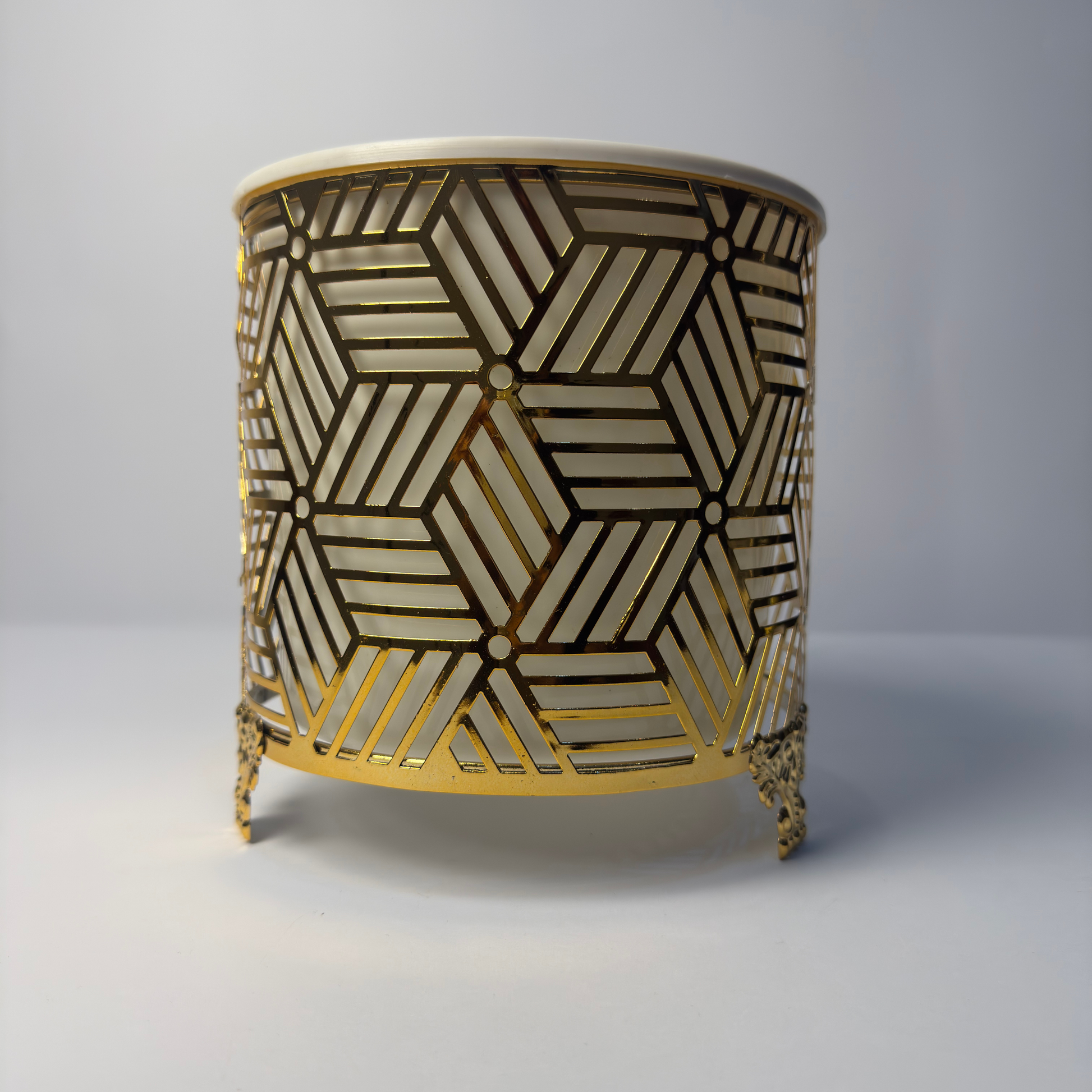 Gold Metal |Geometric Pencil Cup | Laser Carved Design